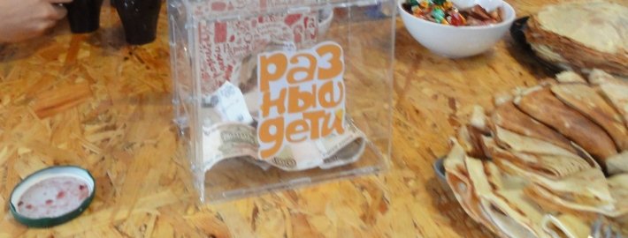 «Разные дети» на «Душевном Bazar'е» 18-12-2012 16 декабря 2012 года фонд «Разные дети» впервые принял участие в Новогодней благотворительной ярмарке "Душевный Bazar" в парке "Сокольники". На красочном стенде фонда собралась почти вся небольшая команда фонда вместе с волонтерами. За девять часов непрерывных продаж было собрано 38 010 рублей.